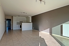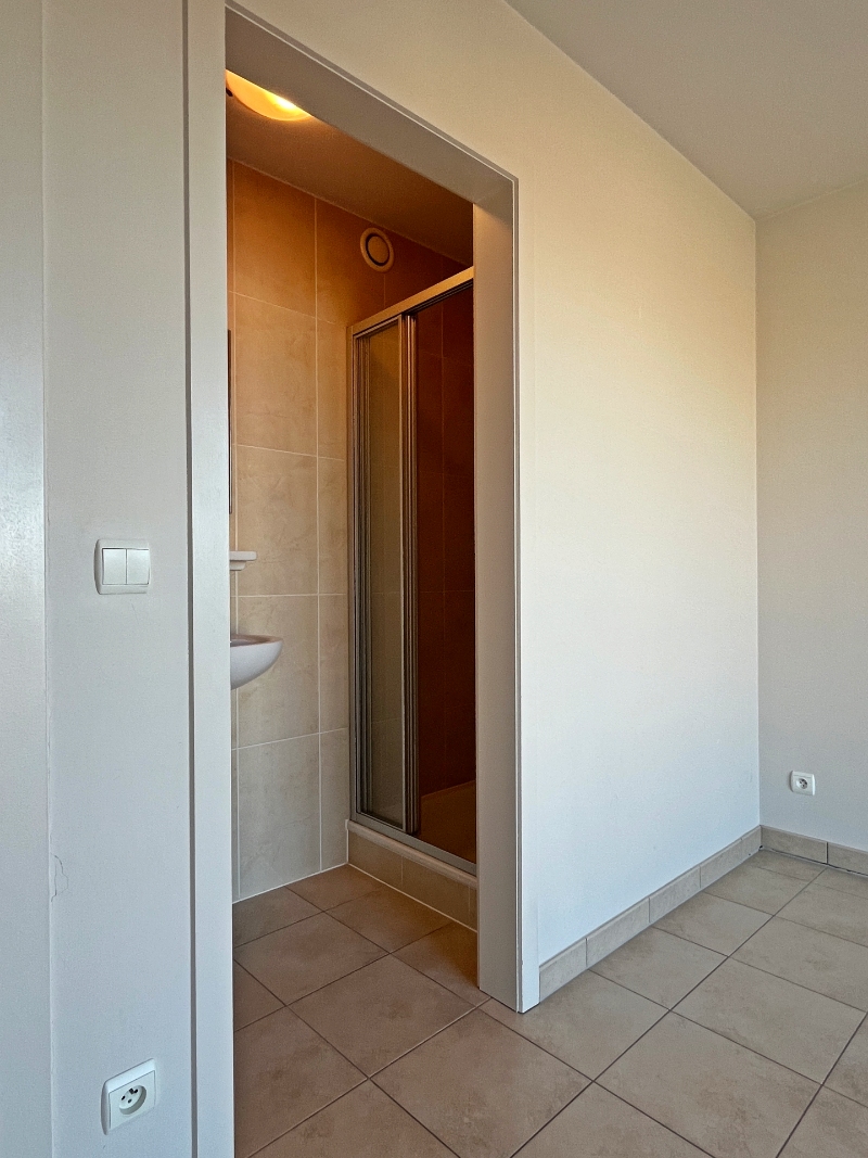 Indeling : Woonkamer met open keuken en terras. Inkomhal met vestiaire, apart toilet, berging en badkamer. Twee slaapkamers, waarvan één met aparte doucheruimte en een rustig terras. Inclusief kelderberging.